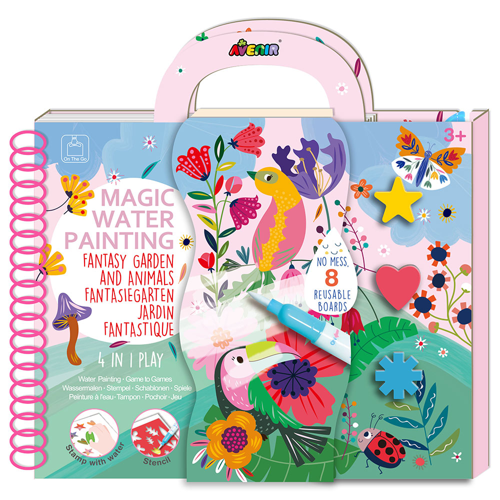 Osem čudovitih strani čarobnega barvanja z vodo. Pobarvanka vsebuje številne motive, ki otrokom nudijo obilo kreativne zabave. Poleg barvanja vsebuje tudi igre, kot so labirint, iskanje razlik in skrivalnice. Navlažite čopič in premažite liste, da razkrijete barvo. Odličen igralni komplet za na pot.