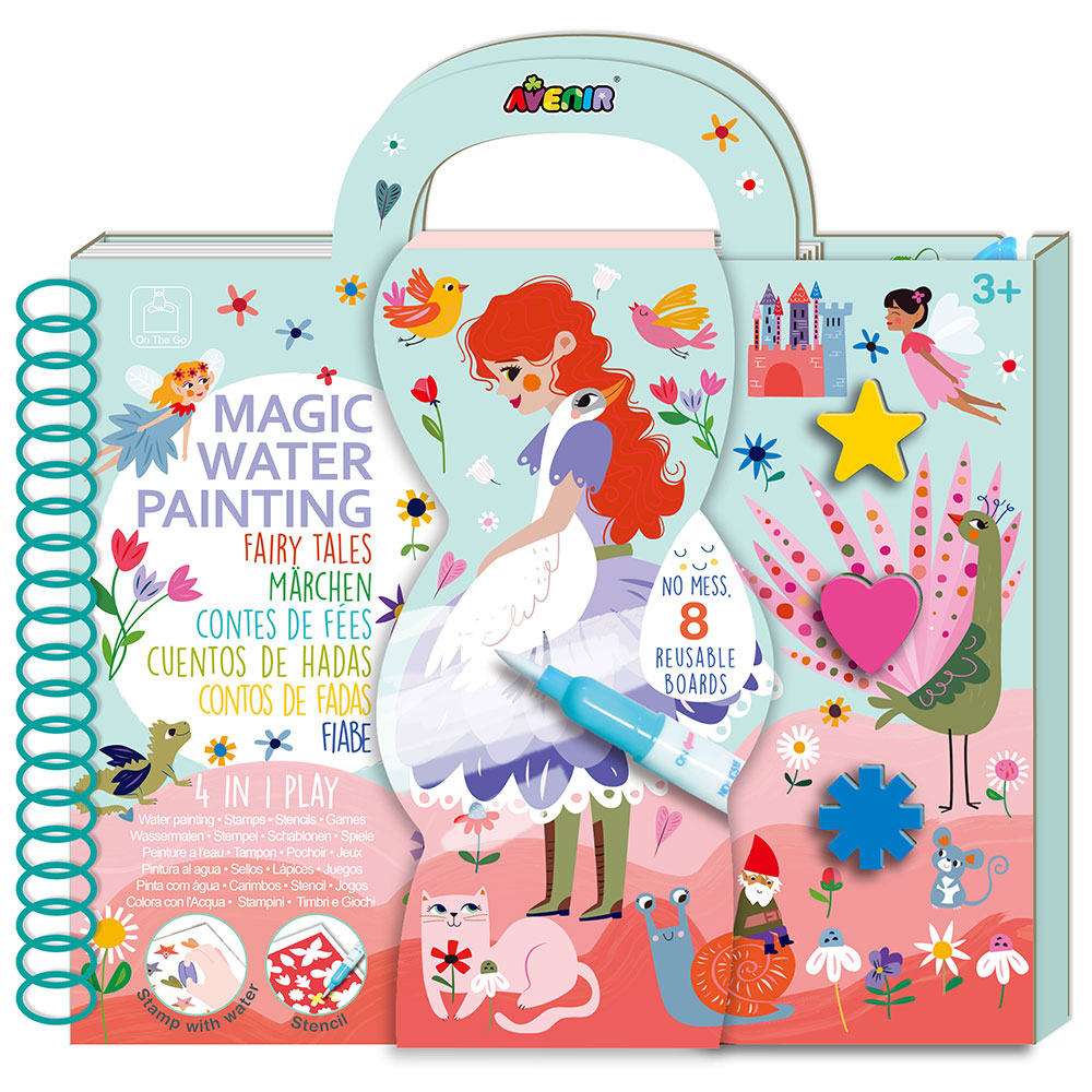 Osem čudovitih strani čarobnega barvanja z vodo. Pobarvanka vsebuje številne motive, ki otrokom nudijo obilo kreativne zabave. Poleg barvanja vsebuje tudi igre, kot so labirint, iskanje razlik in skrivalnice. Navlažite čopič in premažite liste, da razkrijete barvo. Odličen igralni komplet za na pot.