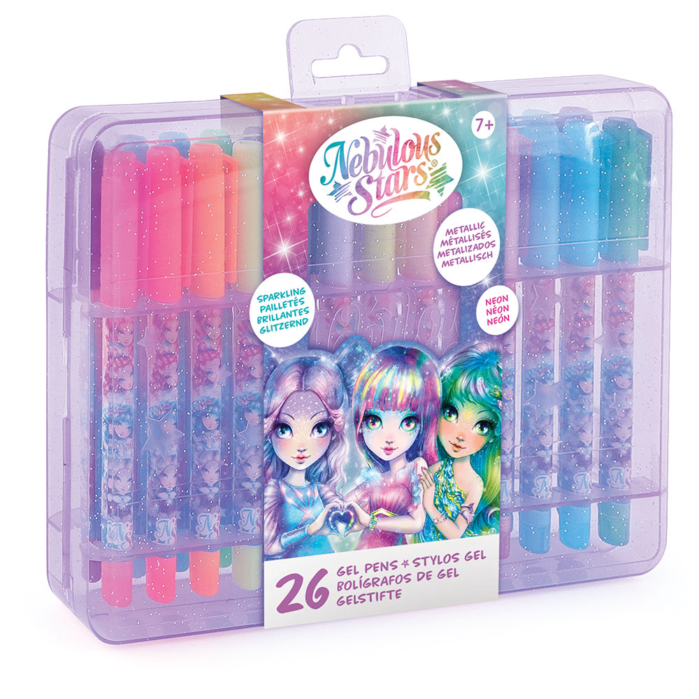 Najboljši komplet pisal za mlade umetnice! Vsebuje 26 gel pisal v bleščečih, neonskih in kovinskih odtenkih!