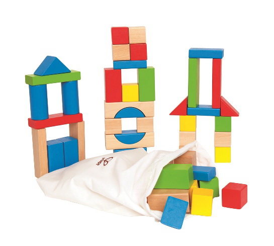Komplet vkjučuje 50 barvitih lesenih kock, s katerimi lahko malčki zgradijo različne skulpture ali pa jih preprosto le razvrščajo. Kockam je priložena še platnena vrečka, tako da se lažje shranijo. Trpežne lesene kocke, ki bodo navdihnile ure in ure igre ter ustvarile nove generacije malih graditeljev! Otroci lahko raziskujejo različne oblike in odkrivajo, kako lahko z njimi zgradijo višje ali širše stolpe. Kako visoko lahko zgradijo, preden se stolp zruši? Zgradite hišo in ustvarjajte zgodbe o tem, kdo v njej živi! Izdelek spodbuja ustvarjalno gradnjo in razvoj fine motorike, uči osnovnih principov ravnotežja in prostorskega razmišljanja. Primerno za starost 12m+