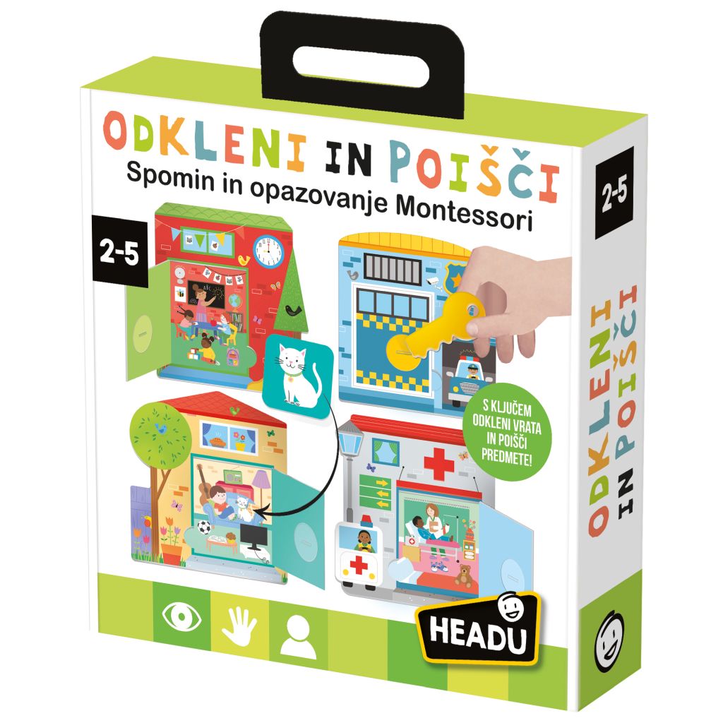 Kje je žoga? Kje je nahrbtnik? Odkleni prava vrata in odkrij skrite predmete! Ta izvirna igra za najmlajše spodbuja spomin, spretnost in radovednost. S posebnim ključem odklepaj vrata štirih različnih stavb in poišči številne zanimive predmete. Zabavna in poučna igra, ki bo očarala male raziskovalce!