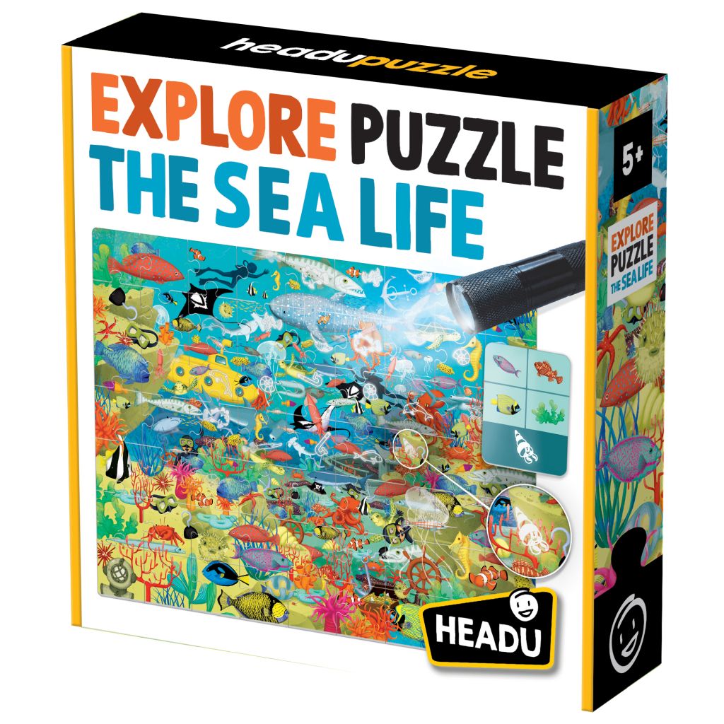 Pripravite se na nepozabno podvodno avanturo z edinstveno sestavljanko, ki združuje zabavo, izziv in magijo! Ta čarobna sestavljanka vas popelje v pisani svet morskih globin, kjer barvite ilustracije in zanimive naloge čakajo, da jih odkrijete. S pomočjo priloženih kartic otroci iščejo določene sličice, vendar je pravi čar v posebni svetilki – ko jo usmerite na sestavljanko, se razkrijejo skrite podrobnosti, ki so sicer nevidne s prostim očesom.