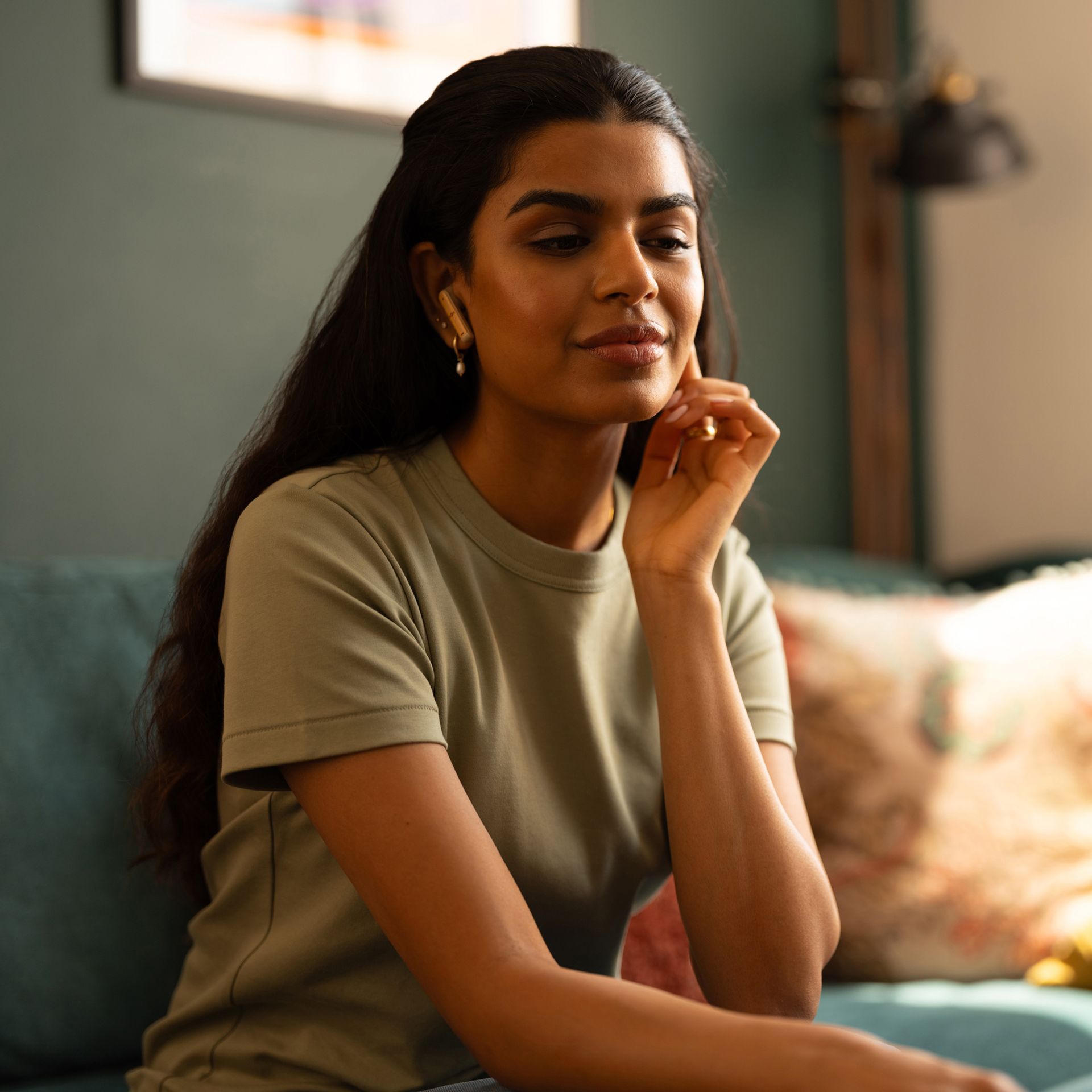 Zvočna udobnost in trajnost se združita v slušalkah Zion True Wireless.S posebno (non-occluding) obliko in lahkotnim prileganjem so slušalke Zion ustvarjene za tiste, ki želijo ostati povezani z okolico, ne da bi žrtvovali kakovost zvoka.