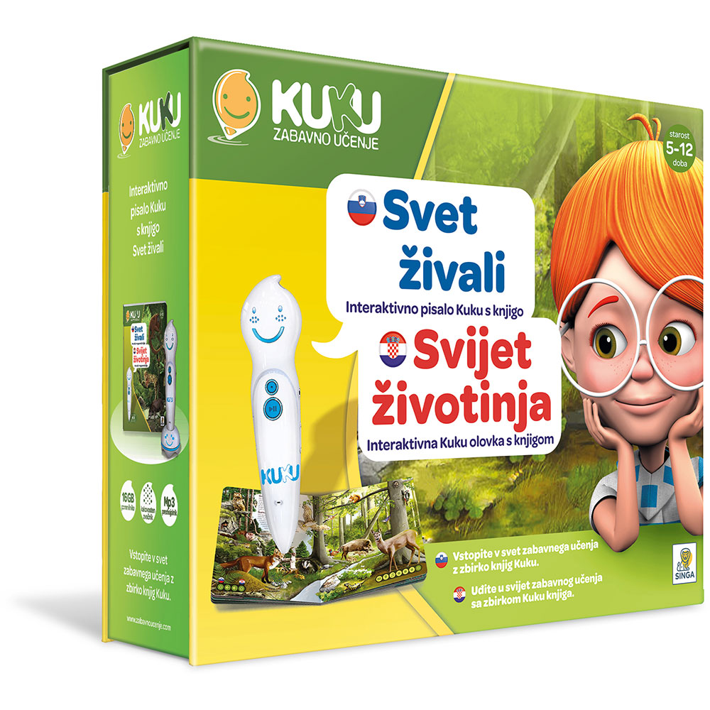 Ali prepoznaš žival, s strupom katere Indijanci premažejo svoje puščice? Ali veš, kateri je največji glodavec na svetu? Ali najdeš žival, ki ji nikoli ni treba piti, saj vso vodo pridobi iz hrane? Pokukaj v interaktiven svet živali s pisalom KUKU in odgovori bodo kot na dlani. Svoje znanje lahko preizkusiš z zabavnimi kvizi.