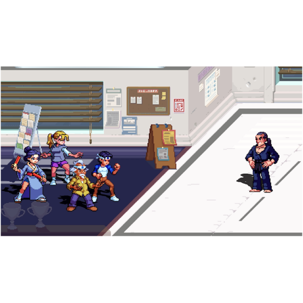 V ikoničnih krajih iz prvih treh klasičnih filmov o Karate Kidu iz osemdesetih let prejšnjega stoletja se boste iz dojoja podali na ulice doline San Fernando in Okinawe ter se v tej pustolovščini v slogu pixel art, ki se vrti s strani, spopadli z valovi sovražnikov. Igrajte kot Daniel LaRusso, gospod Miyagi, Ali Mills ali Kumiko in premagajte Johnnyja Lawrencea, Johna Kreesa, Terryja Silverja in druge, ki nameravajo za vedno prevladati nad karatejem Miyagi-Do. Ta igra ponuja intenzivne borilne veščine in frenetično izkušnjo nenehnega bojevanja z retro-obnovljenim občutkom iz izvirnih, kultnih filmov.