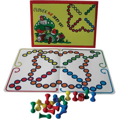 Človek ne jezi se, je legendarna družabna igra za štiri ali več igralcev. Cilj igre je hitreje kot nasprotnik spraviti vse svoje figurice na cilj. Preizkusite svojo srečo in poskusite prvi spraviti vse štiri figurice na cilj.