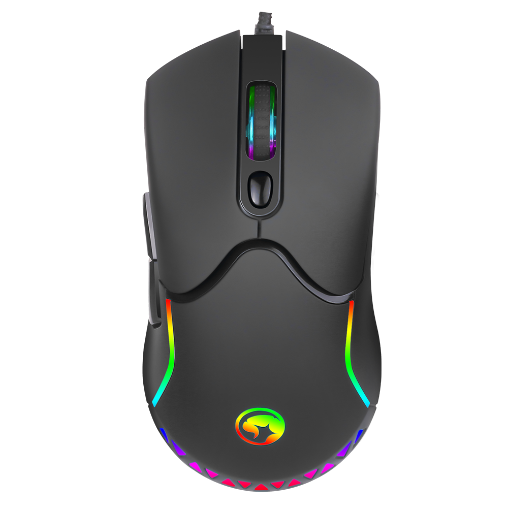 MARVO M359 žična miška je primerna za igranje video iger. Ima 7 programsko nastavljivih gumbov in RGB osvetlitev. S svojo ergonomsko obliko je tako primerna za desničarje in levičarje.
