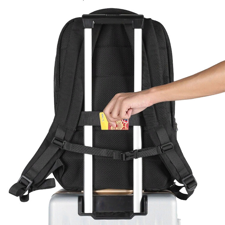 Njegova prednost je velika prostornost in organiziranost, z možnostjo razširitve glavnega predala. Nahrbtnik je izdelan iz visoko kvalitetnih, vodoodbojnih materialov. Žepi nahrbtnika so zaščiteni s posebej zasnovano dvojno zadrgo, z možnostjo zaklepa, da bo vaša vsebina varna pred nepridipravi. Na sprednji strani in na straneh najdemo hitro dostopna žepe, za stvari, ki jih zmeraj rabite. Na hrbtnem delu je skrit žep za posebne dragocenosti. Na zunanji strani USB izhod, na katerega priklopite prenosno polnilno baterijo in napolnite telefon, tablico ali kakšno drugo napravo. Glavna predala sta dva, popolnoma oblazinjen za prenosni računalnik 17˝ in eden globlji za raznovrstne dodatke. Naramnice so oblazinjene in prilagodljive, hrbtni del pa zračen in mehak, primeren tudi za dolgotrajno nošenje. Na hrbtnem delu je nameščen trak za pritrditev nahrbtnika na kovček.