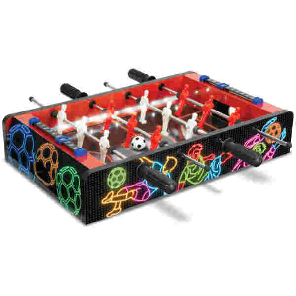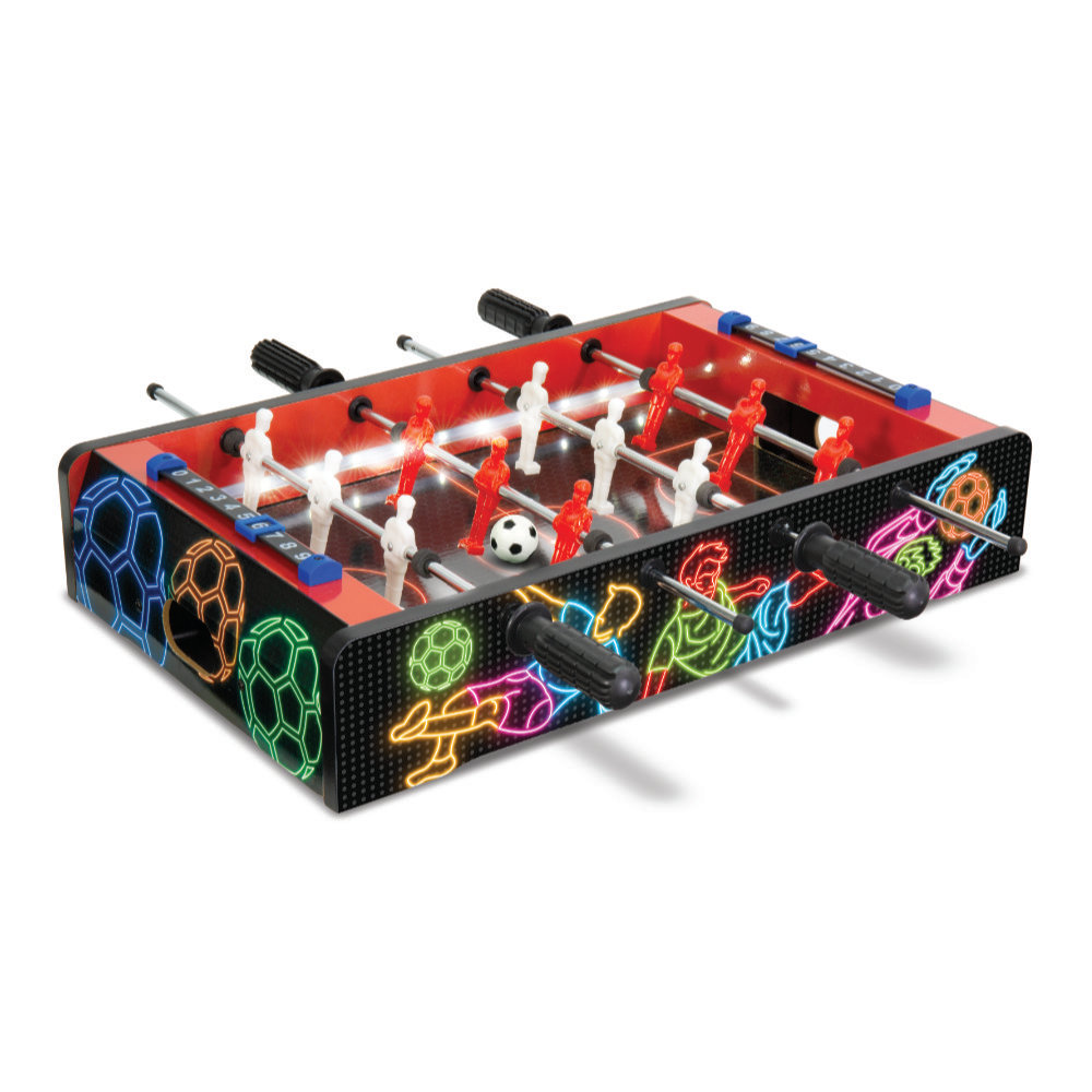 Namizni nogomet še nikoli ni bil tako razburljiv! Igrajte igro s hitrim tempom in vso razburljivostjo običajnega nogometa – vključno s streli na gol, prevali in prerivanjem, nato vznemirjenje še povečajte z LED lučmi, ki osvetlijo igralno površino.