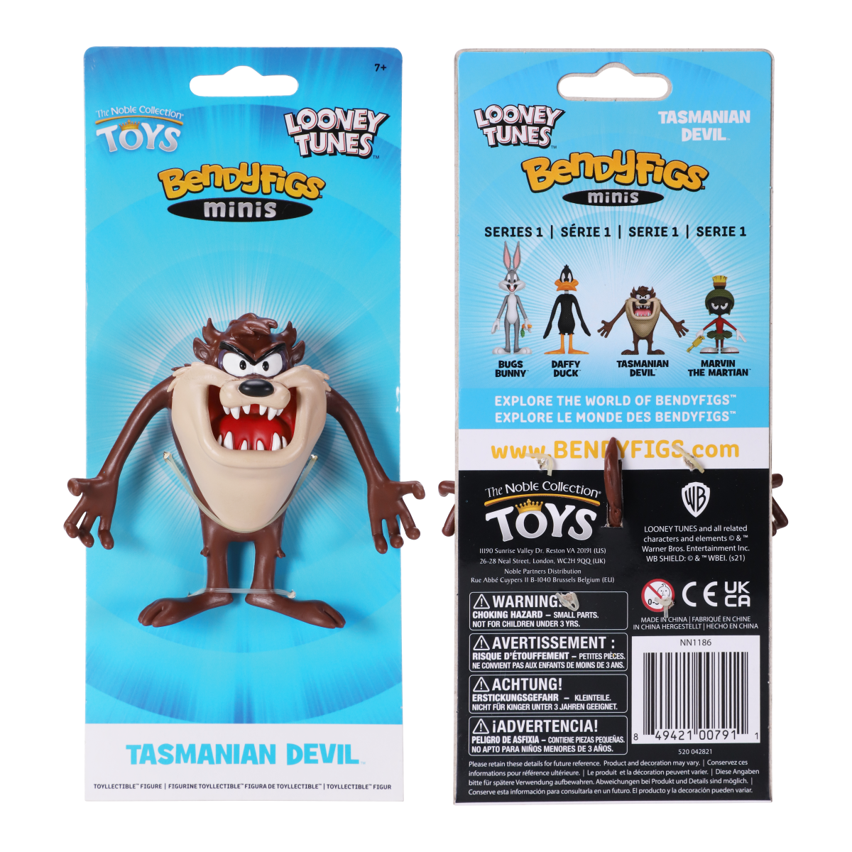 Nova serija mini Bendyfigs™ prinaša priljubljene junake iz televizijske klasike Looney Tunes. Mini figura Tazmanijskega vraga (Taz), priljubljenega vrtinca kaosa, je visoka približno 9 cm (3,5 palcev) in ohranja njegove ikonične poteze.