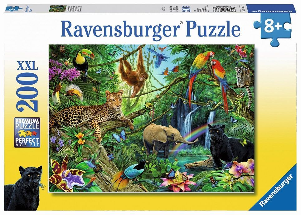 Otroška sestavljanka "Živali v džungli" je primerna za otroke od 8. leta starosti in vsebuje 200 kosov. Prikazuje razburljiv prizor živalskega sveta v džungli, kjer se lahko srečate z različnimi eksotičnimi živalmi, kot so opice, tigri, papige in sloni, ki živijo v bujni in živahni pokrajini. Sestavljanka omogoča enostavno sestavljanje ter spodbuja raziskovanje in razvijanje motoričnih spretnosti ter domišljije pri otrocih. Puzzle, pisana jungle, papige, pisane ptice in druge safari živali… 200 delna sestavljanka z XXL velikostjo in edinstveno obliko koščkov. Narejeno iz visoko kvalitetnega kartona, ter kombinirano s finim, lanenim strukturiranim papirjem za zmanjšanje odsevnosti na sliki. Velikost slike 49x36cm. Primerno za starost 8l+
