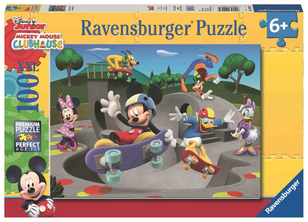 Mickeyeva zabava v skate parku. 100 delna sestavljanka z XXL velikostjo koščkov, s katero otrok pridobiva dragocene veščine motoričnih spretnosti, medtem, ko se zabava pri sestavljanju. Narejeno iz visoko kvalitetnega kartona, ter kombinirano s finim, lanenim tiskom za zmanjšanje odsevnosti na sliki. Velikost 49 x 36cm. Primerno za starost 6l+