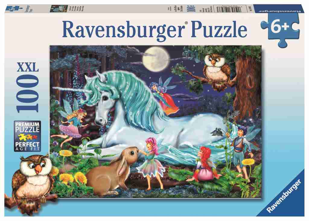 Samorog v čarobnem gozdu, 100 delna sestavljanka z XXL velikostjo koščkov, s katero otrok pridobiva dragocene veščine motoričnih spretnosti, medtem, ko se zabava pri sestavljanju. Narejeno iz visoko kvalitetnega kartona, ter kombinirano s finim, lanenim tiskom za zmanjšanje odsevnosti na sliki. Velikost 49 x 36cm. Primerno za starost 6l+