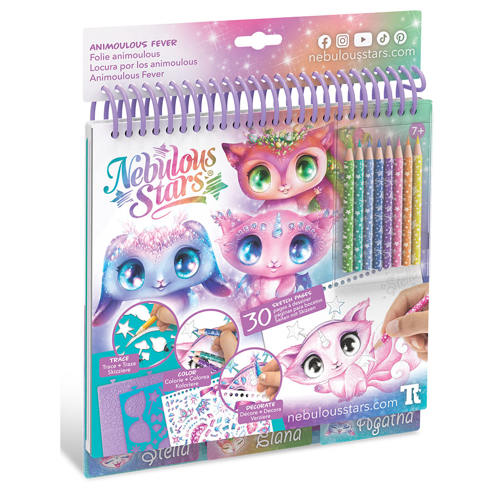 Najljubša skicirka vsakega otroka! 30 strani prikupnih in čarobnih živalic, ki jih lahko pobarvate s pomočjo šablon in vzorcev za odtis in okrasite z nalepkami.
