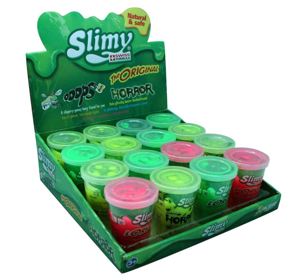 TREND! Edini izdelek na trgu, ki je v skladu z normativi EU in je edinstven! Švicarska formuja zagotavlja, da je izdelek varen in neoporečen. Slimy mehka sluzasa masa s katero so možnosti za igro neomejene…. Kako se vleče in kako je zabavno! največja izbira barv na področju Slimijev. Na voljo so zelena, rumen, roza, vijolična, modra…. . Primerno za 3l+