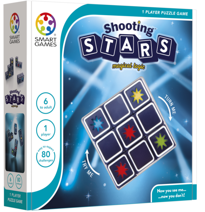 Igra s 5 zvezdicami je polna čarovnije! Kocke zložite, tako da zvezdice zasijejo kot je navedeno v izzivu. Ko se kocke obračajo, se barve zvezd spremenijo, kar oteži reševanje izziva. Primerno za starost 6+, 80 izzivovov za 1 igralca. Set vsebuje: 4 dvostranke kocke, knjižico z izzivi in rešitvami. Izdelek vzpodbuja: logiko, načrtovanje, reševanje problema in umestitev v prostoru.