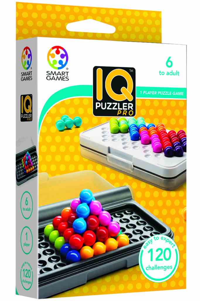 SmartGames IQ-Puzzler Pro ima 120 izzivov v treh igralnih načinih, vključno z 2D in 3D izzivi! Za enega igralca. Vsebina: 1 kompaktna igralna plošča s prozornim pokrovom, 12 pisanih kosov sestavljanke, 1 knjižica s 120 izzivi in rešitvami. Izdelek vzpodbuja miselne spretnosti: koncentracijo, logiko, načrtovanje, reševanje problema, umeščanje v prostoru. 6+
