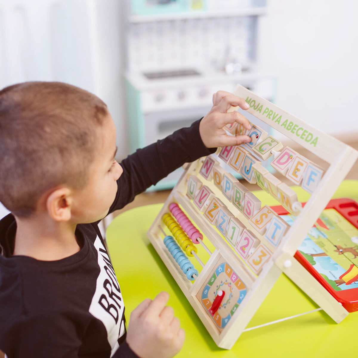 Otroci so radovedni in hitro jih zanima svet črk. S pomočjo igre Moja prva abeceda učenje poteka enostavno in nevede. Otrok spoznava črke in besede, se uri v štetju in računanju ter se uči odčitati uro. Vsaka črka je ponazorjena s sličico, zato jih otrok med seboj toliko lažje loči in si jih tudi zapomni.
