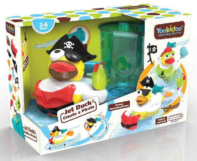 Račka na baterije, ki se vrti in plava. Za igro v banji ali bazenu. 15 piratskih tematskih dodatkov omogoča ustvarjanje različnih karakterjev za aktivno igro. Vodni top jo poganja naprej in okrog. Obrnite top ali odstranite noge – vsako dejanje vpliva na plavalno pot račke. Primerno za starost 2l+ Izdelek deluje na baterije, 3×1,5V AA (LR03), niso priložene.